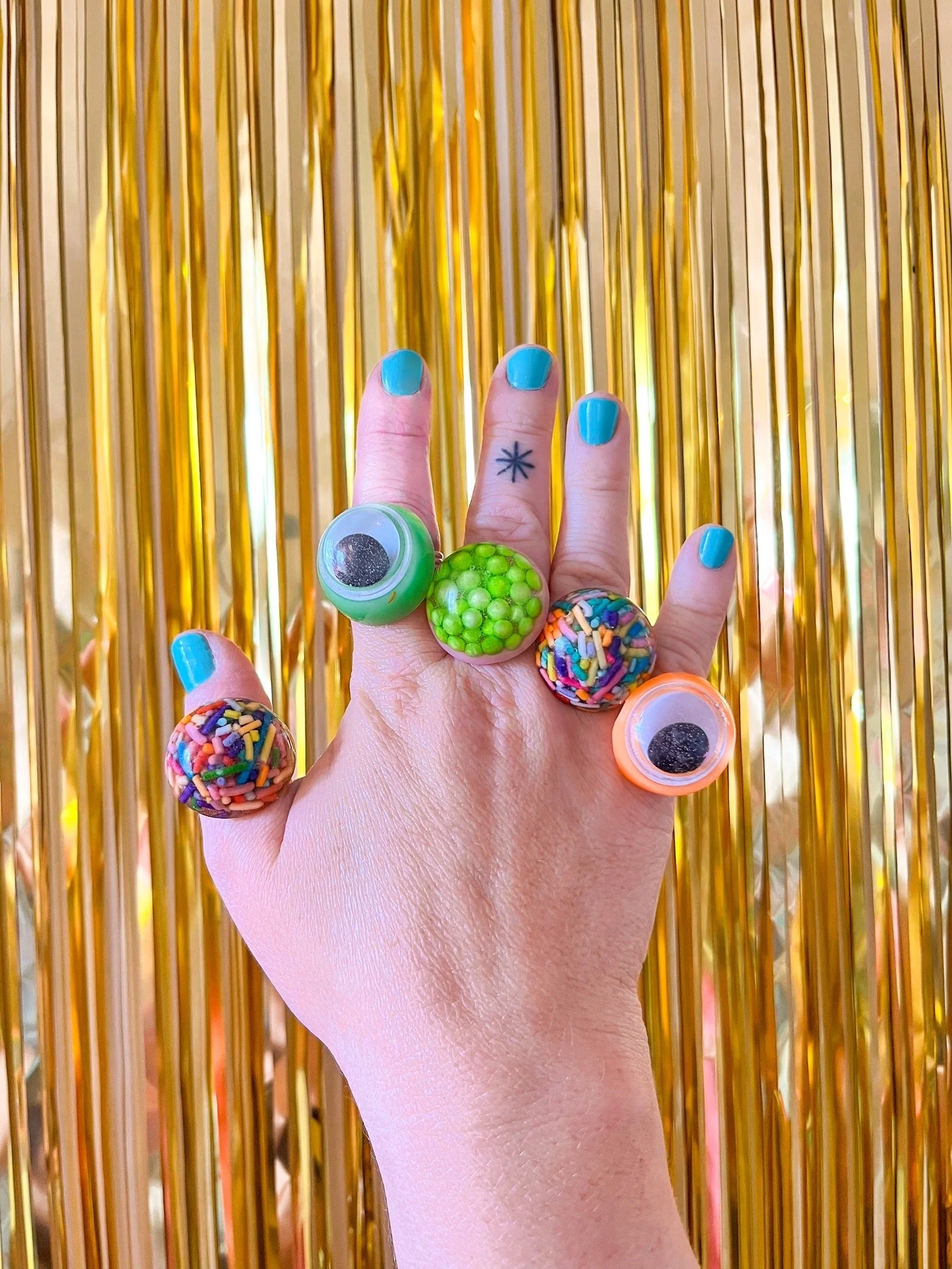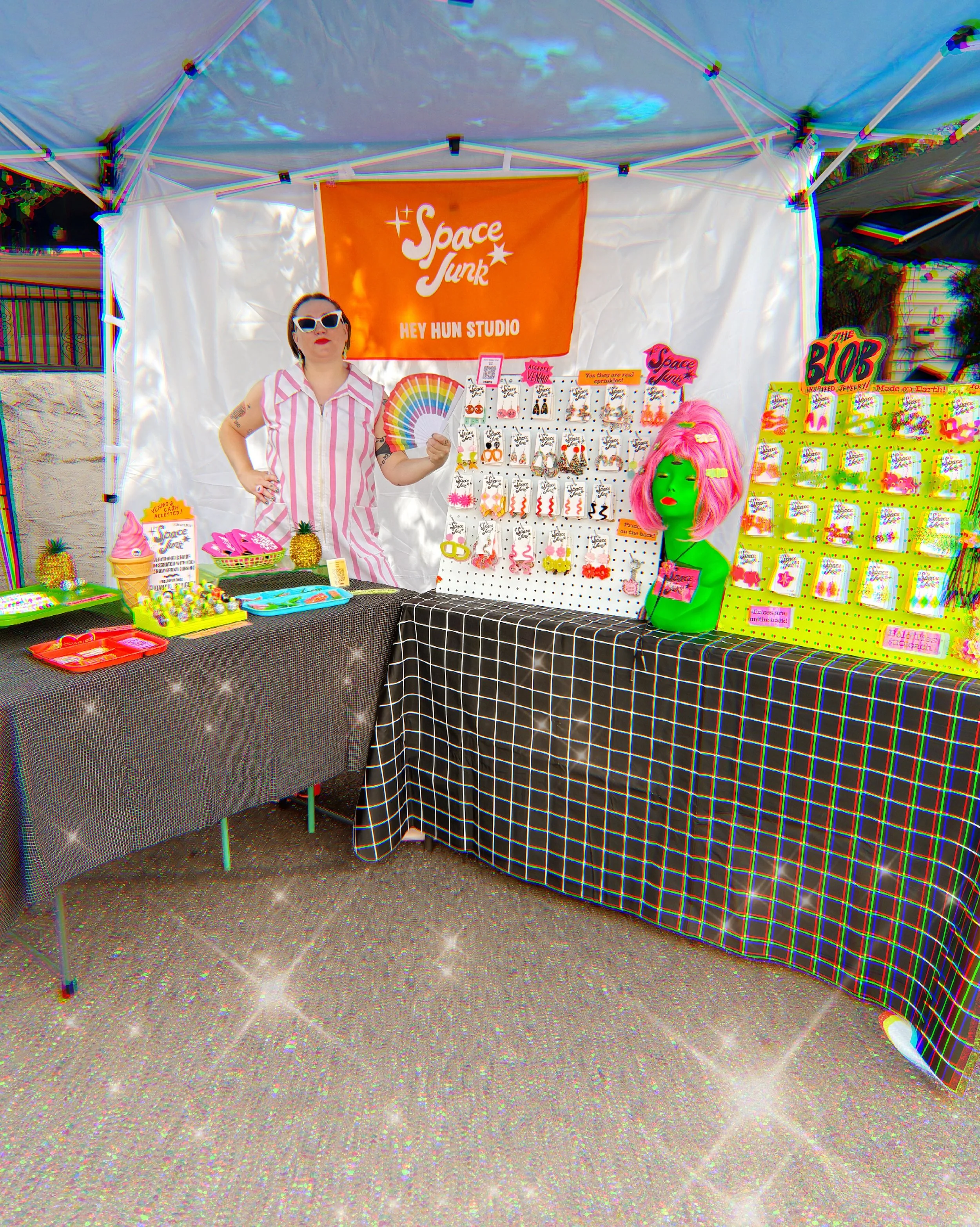 Each piece is one of a kind, designed, and created by myself. All Space Junk is sustainably produced with low waste using an eco-friendly epoxy resin & recyclable packaging. I mix my own colors and build each piece by hand. Statement pieces that are lightweight, comfortable, for maximalists OR minimalists!
