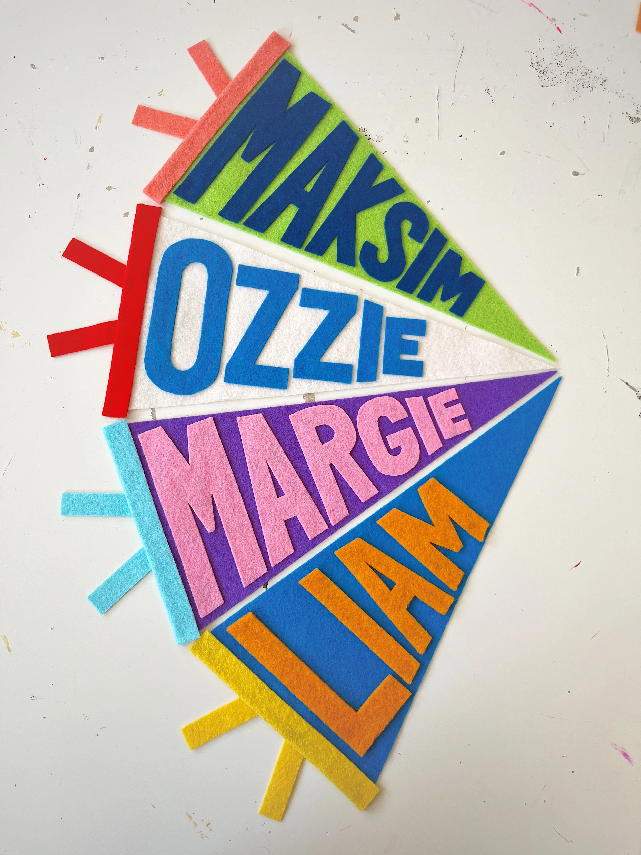 Hand cut and assembled pennants created with a wool / rayon blend felt (made in the US) made just for you (or your kiddo, or fur baby, or favorite person)! Choose from an array of beautiful colors to create a keepsake that will last for years.